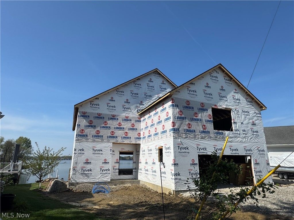 Stunning brand-new construction on beautiful Lake Milton offering modern luxury, breathtaking views, and exceptional waterfront living. This impressive 4-bedroom, 3.5-bath home features an open-concept design centered around a dramatic great room with soaring 18-foot floor-to-ceiling ceilings and expansive double sliders that lead to a spacious wraparound deck, perfect for entertaining or enjoying panoramic lake views. The main level includes a luxurious primary suite with a private bath, while nearly every room in the home is designed to capture scenic views of the lake. The upper level offers two bedrooms, a full bath open to a junior suite, an 22x27 bonus room, and an 8x15 loft connected by a striking catwalk overlooking the great room below. The walk-out lower level adds incredible versatility with an additional bedroom, half bath, mini kitchen, and laundry area, ideal for guests, extended family, or entertaining. An oversized 2-car garage provides ample room for vehicles, storage, and lake gear, while dual HVAC systems offer year-round comfort and efficiency. Step outside to enjoy a large patio overlooking the water, designed to maximize outdoor living and lake views. The property also includes two private boat slips, additional dock space, and a charming small beach area providing easy access for boating, swimming, fishing, and all your waterfront adventures. A rare opportunity to own brand-new lakefront construction on Lake Milton!