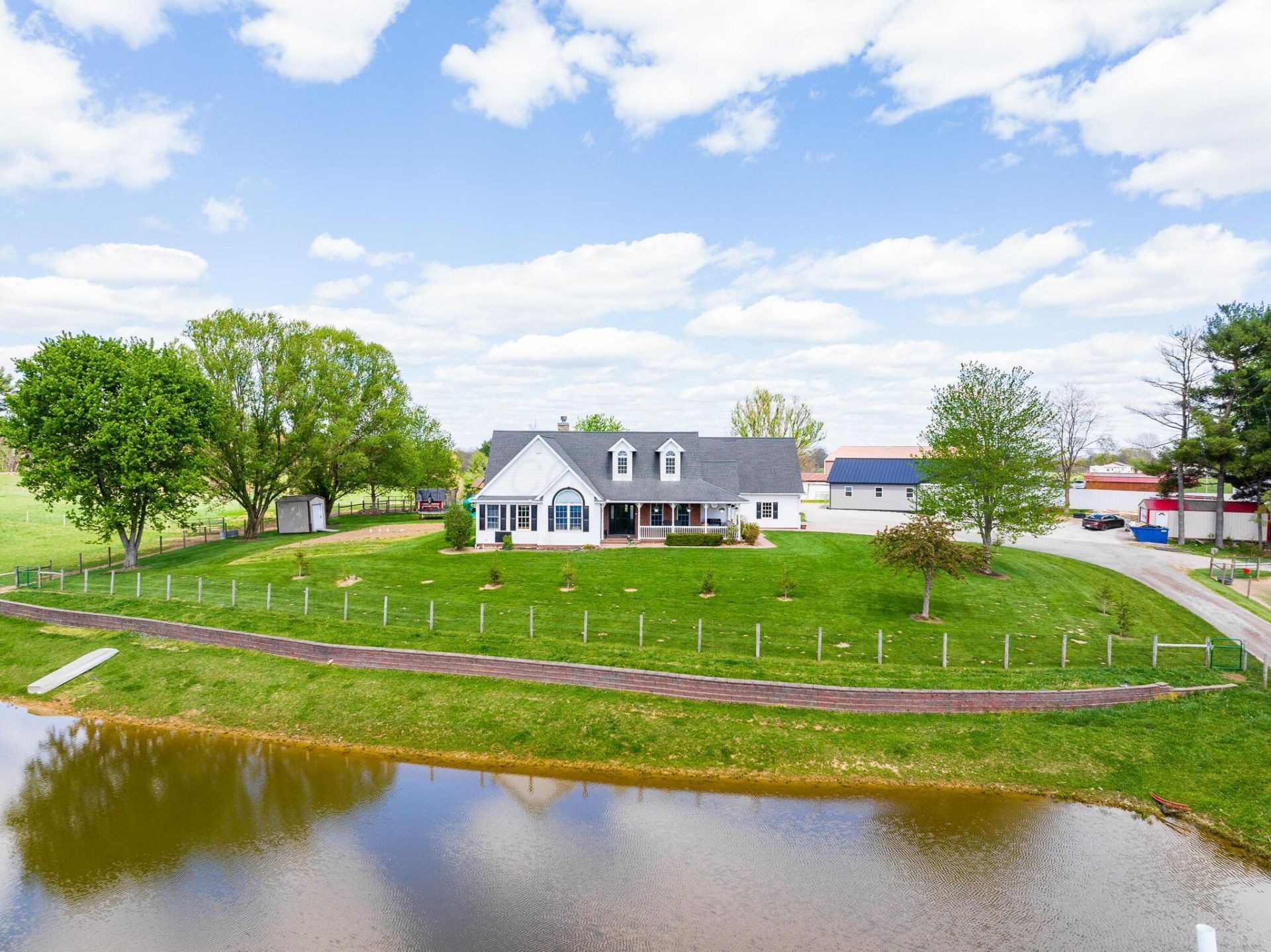 This beautiful property, set on 8 acres, offers the ideal combination of usable land and country living. With a mix of open ground, approximately 6 acres of fenced pasture, and a centrally located pond, the property is well-suited for hobby farming, livestock, or simply enjoying a peaceful rural lifestyle.The home features 3 bedrooms and 2 full bathrooms, with a spacious main living area highlighted by vaulted ceilings that connect the kitchen and living room. A separate dining room and dedicated laundry room add to the home's functional layout. The primary bedroom includes a private full bath complete with a jacuzzi tub and separate shower. A partially finished basement provides additional space for recreation, storage, or future living area. Utilities include geothermal heating and cooling, a natural gas tankless hot water heater, private well, and septic. Outdoor living is just as inviting, with both front and rear covered porches along with a stamped concrete patio.The outbuildings add excellent versatility to the property. A 30' x 60' detached shop/barn, built in 2023, is fully insulated and features two overhead garage doors along with a man door. The barn portion includes four portable stalls, while the shop area remains open for a variety of uses. A 20' x 24' three-sided machinery shed provides additional storage for equipment, hay, or other needs.Whether you're looking for a small farm setup, room for animals, or a well-rounded rural property with quality improvements, this one offers the space and flexibility to fit a wide range of uses.