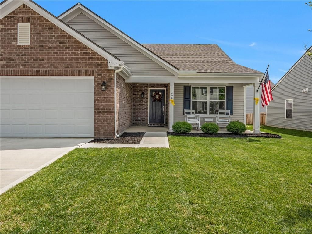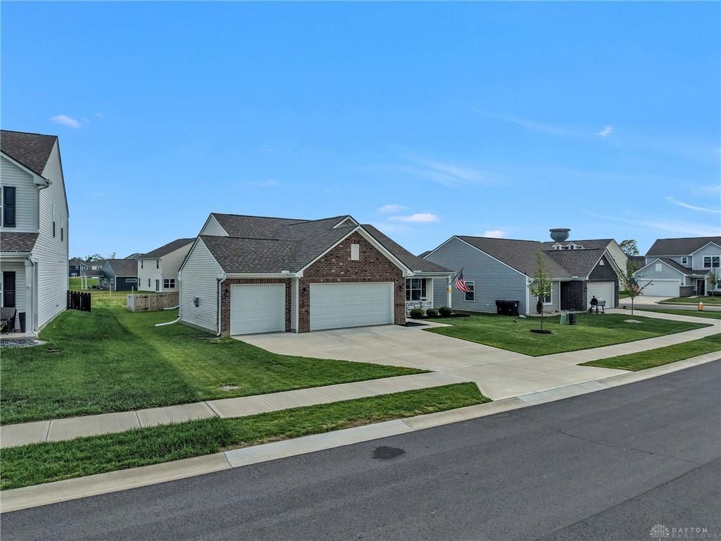 Welcome to 5020 Willow Drive in Clayton where you can enjoy the perks of new construction without the wait! Skip the build time and move right into this beautifully upgraded Arbor Home-Bradford floorplan packed with features today’s buyers are looking for. From the moment you arrive, you’ll love the charming covered front porch and impressive 3-car garage with insulated doors, ceiling insulation, and extra outlets perfect for storage, hobbies, or workspace needs. Inside, the home showcases a bright open-concept layout with vaulted 10-ft ceilings in the main living area and upgraded flooring throughout. The spacious kitchen is truly the heart of the home, featuring a center island, granite counters, pantry, black stainless steel appliances, and a gas range with air fry option ideal for both everyday living and entertaining. Ample cabinetry and drawer space provide exceptional storage. A dedicated office or flex space offers versatility for working from home, playroom, dining, or additional living area. The primary suite is a relaxing retreat with a tray ceiling, double sinks, 42-inch height counters, and a large walk-in shower. Additional conveniences include two linen closets for added storage. Step outside to enjoy the covered back porch with ceiling fan perfect for relaxing or hosting gatherings overlooking a fully fenced backyard with three entry points. Located in a community featuring a children’s playground and offering easy access to I-70, shopping, and dining, this home combines comfort, convenience, and modern upgrades all in one. Don't miss the chance to see this one and possibly call it your own!