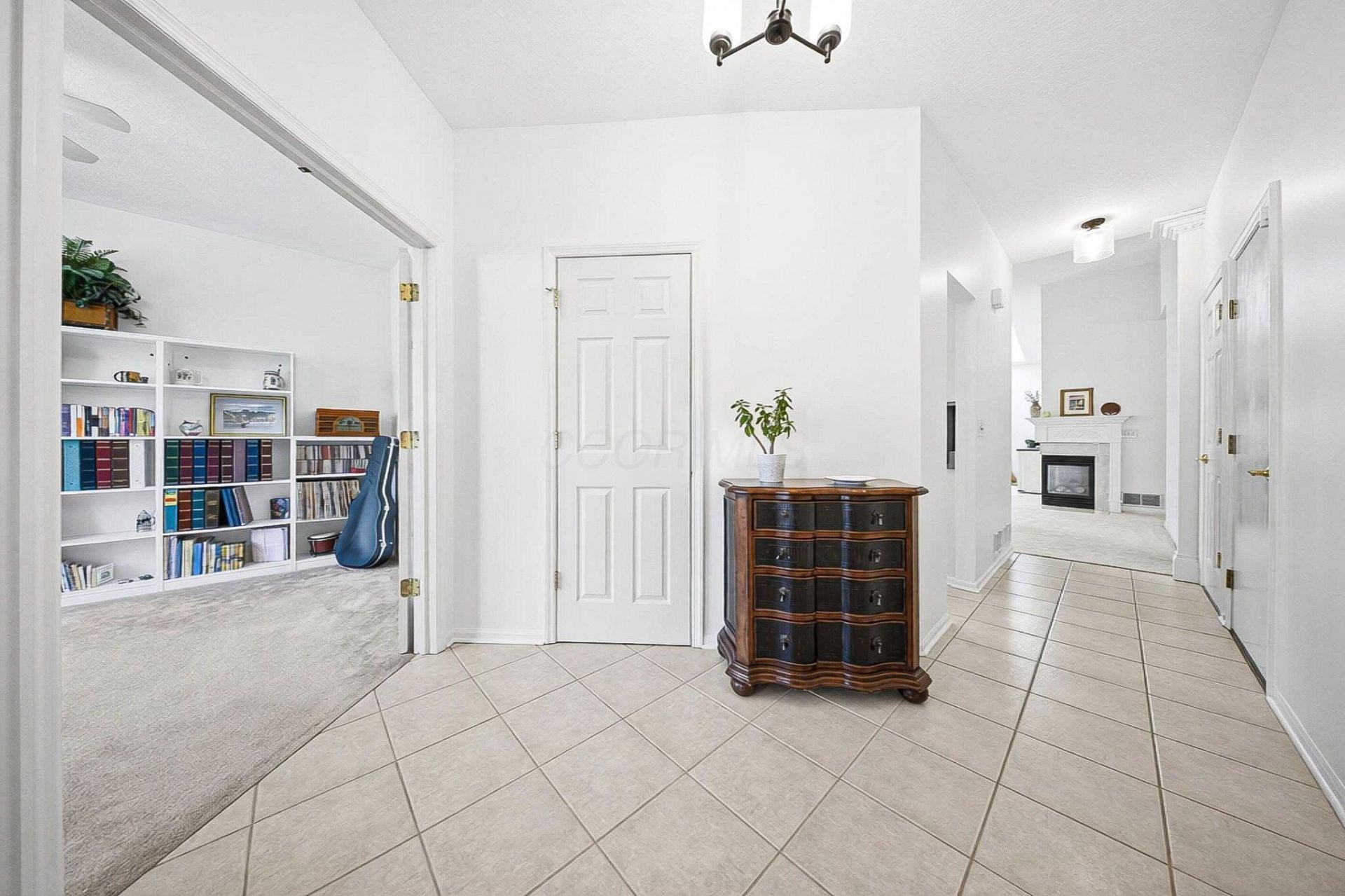 Welcome home to this beautifully maintained one-story gem in the heart of Hilliard! Condos in this desirable community rarely come up for sale, making this a unique opportunity to enjoy easy, first-floor living in a prime location. This home features a spacious and functional layout with thoughtful updates throughout. The inviting den, complete with French doors and built-in bookshelves, creates the perfect space for a home office or cozy retreat. The great room impresses with soaring cathedral ceilings, skylights that flood the space with natural light, and a gas fireplace with a stunning mantle--perfect for relaxing or entertaining. Just off the great room, enjoy your morning coffee or evening unwind on the screened porch. The large island kitchen boasts an abundance of white cabinetry, a 9-foot ceiling, and plenty of space for cooking and gathering. Generously sized bedrooms provide comfort for all, while the owner's suite offers a vaulted ceiling, expansive windows, a private bath with double vanity, soaking tub, and a large walk-in closet. Additional highlights include first-floor laundry, a freshly painted interior, new carpet in the living room and bedrooms, and a newer HVAC system (June 2021). The basement offers endless possibilities--finish it for additional living space or utilize it as a home gym, workshop, or extra storage. Enjoy added convenience with nearby guest parking and a private, remote-controlled entrance from Cosgray Rd. The location is unbeatable--adjacent to Municipal Park and the Heritage Rail Trail, and just minutes from Homestead Park and charming Old Hilliard, where you'll find local dining, shops, and entertainment. This is the perfect blend of comfort, convenience, and lifestyle--don't miss it!