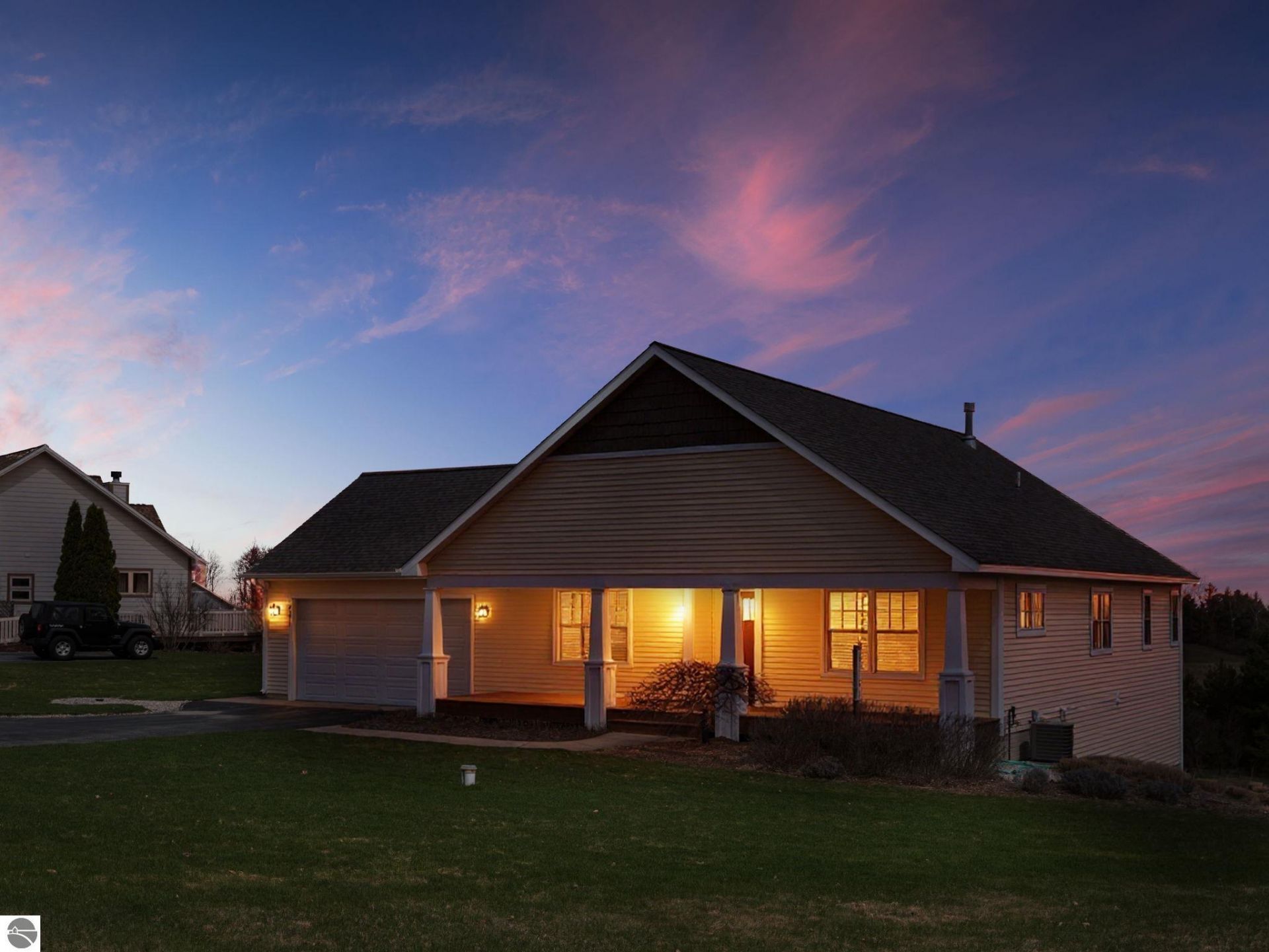 Set in the desirable Bahia Vista neighborhood, 8371 E Boca Vista Trail is an exceptionally well-built home with quality finishes throughout. You???ll appreciate the main-floor living layout, the quiet, upscale setting, and the convenience of being just minutes from Traverse City. Situated on nearly an acre of land and perched on an elevated homesite, this 3-bedroom, 3-bath residence captures sweeping views of West Grand Traverse Bay and the rolling Leelanau countryside - an ever-changing backdrop to enjoy in every season. Inside, the open-concept design is bright and inviting, with vaulted ceilings, hardwood floors, and a well-appointed kitchen featuring granite countertops, stainless steel appliances, and generous cabinetry. The great room, anchored by a fireplace, creates a warm and natural gathering space. The main level includes a spacious primary suite with a private bath and large walk-in closet, a guest bedroom and bath, along with laundry and a thoughtfully designed mudroom. The lower level offers added flexibility with a third bedroom, third bathroom, a large (partially finished) family room, and abundant storage - with the potential for a fourth bedroom. Enjoy both the expansive covered front porch and the back deck, surrounded by a professionally landscaped yard that reflects the natural beauty of Northern Michigan. Come home to the views, stay for the lifestyle - this is Northern Michigan living at its finest.